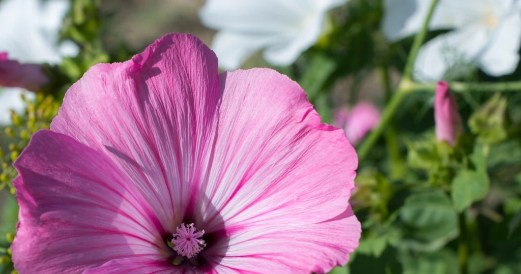 A nyári önkormányzatok legnagyobb előnye a lenyűgöző virágok – átmérőjű 10 cm -re érik el őket, és különböző színűek. A legnépszerűbb a rózsaszín, bár fehér vagy intenzíven piros virágzatú növényeket is választhatunk– Észrevegyük a szirmok sötétebb beidegződését.