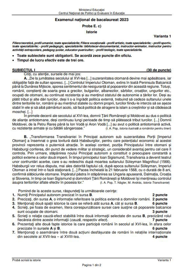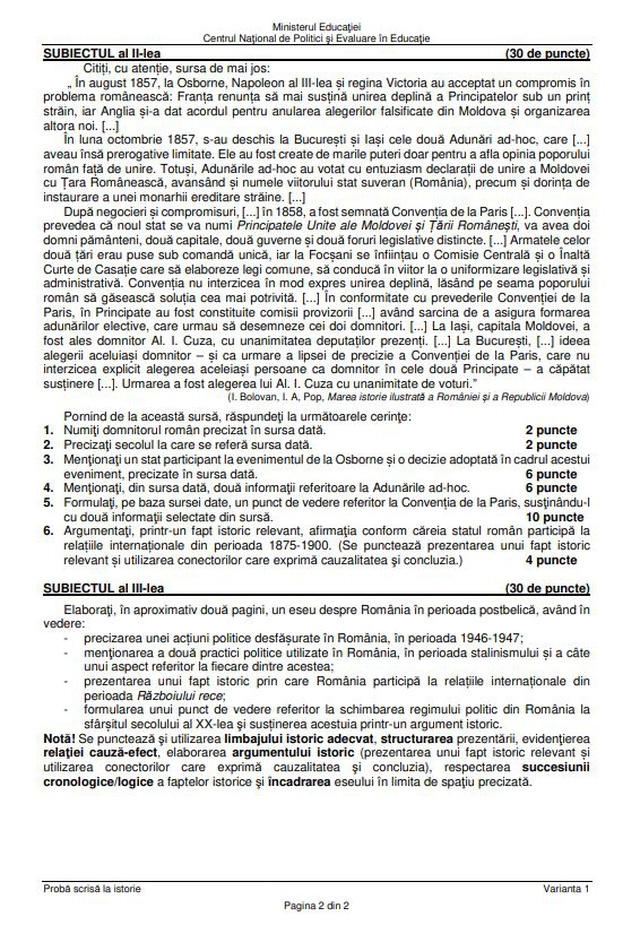 Az első információk szerint a III. tantárgyban esszét kellett írni a diákoknak a háború utáni Romániáról: „Körülbelül két oldalon dolgozzon ki egy esszét Románia belső és nemzetközi helyzetéről a háború utáni időszakban” .