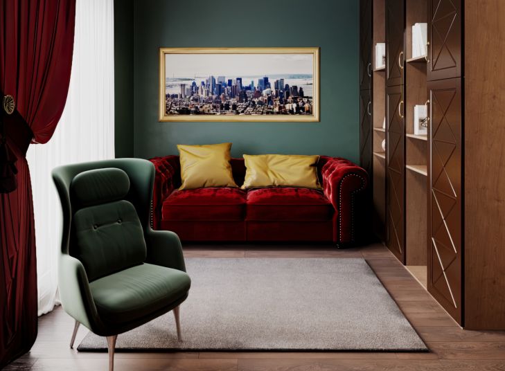 A polcokra szokatlan figurákat, eredeti képkereteket vagy növényekkel ellátott edényeket is elhelyezhet. A könyvespolcok is lenyűgözőek, zsúfolásig tele vannak gyönyörűen bekötött könyvekkel.