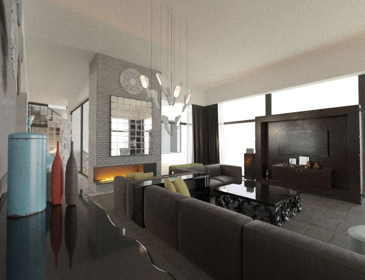 A TV-állvány sokkal előnyösebben fog kinézni, ha jobbra egy magas, keskeny szekrény, balra pedig egy komód található. A különböző szintű bútorok további térfogatot adnak a helyiségnek, így a szoba tágasnak és érdekesnek tűnik a tervezési szempontból.