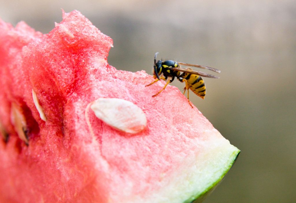 A kerti asztalnál ülsz a barátaiddal? Helyezzen egy darab gyümölcsöt egy másik helyre a kertben, és próbálja meg egy másik helyre csalogatni a darazsak.