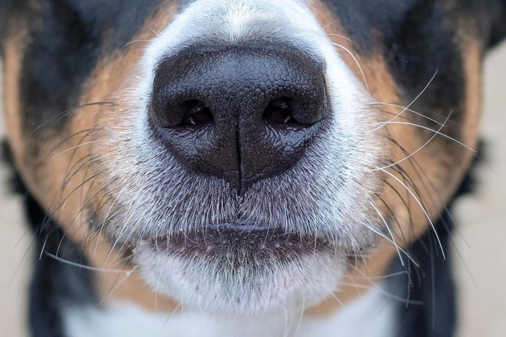 A kutyákról köztudott, hogy kiváló szaglásuk van, hihetetlen 300 millió receptort használnak. Ez 30-szor több, mint egy emberé, és az agynak az ezzel az információval foglalkozó része 40-szer nagyobb a kutyáknál, mint az embereknél. Az orr páratartalma szintén elengedhetetlen, és segíti az érzékelést. A szagokat össze kell keverni a folyadékkal, hogy a kutya jól felismerje őket.