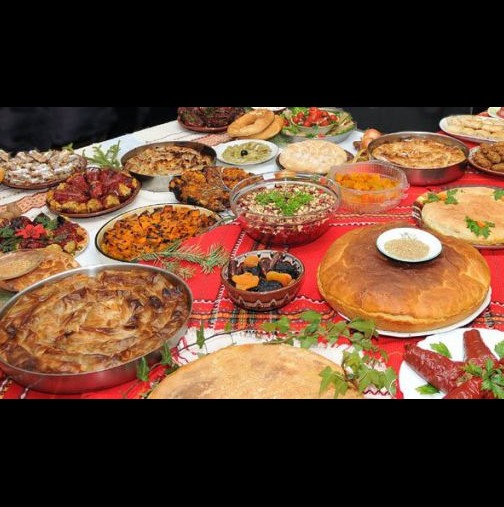 Minden hüvelyes alkalmas – bab, búza, lencse, rizs, bulgur és pattogatott kukorica. A szimbolikus jelentőségű élelmiszerek az aszalt gyümölcsök – alma, szilva, mazsola, sárgabarack és dió – elsősorban a dió. Ne feledkezzünk meg a fokhagymáról sem, amely megvéd a gonosztól és a betegségektől, és a mézet, amely az édes élet kívánsága.