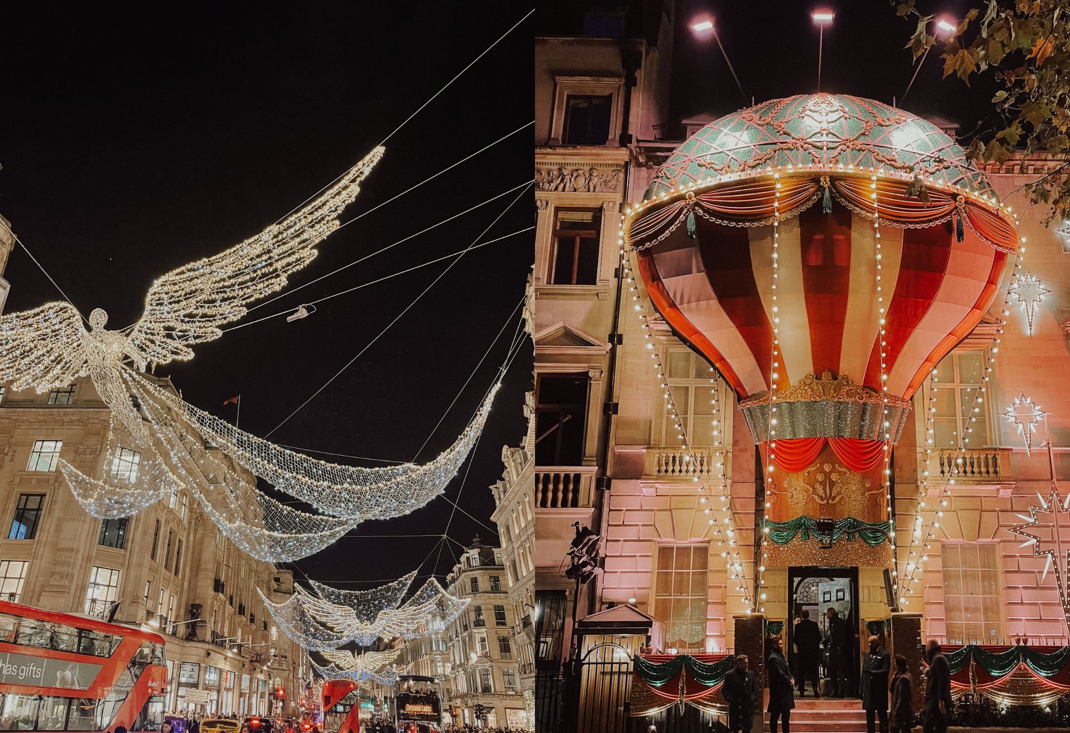 Ezeket az utcákat ismerheti az Instagramon és a TikTokon lévő videókból. Kivilágított angyalok és gyönyörű csillagok lógnak az út felett. A karácsonyi zenével, a piros emeletes buszokkal és a fekete taxikkal együtt ez adja igazán az angol karácsonyi hangulatot. Lélegzetelállítóan szép.
