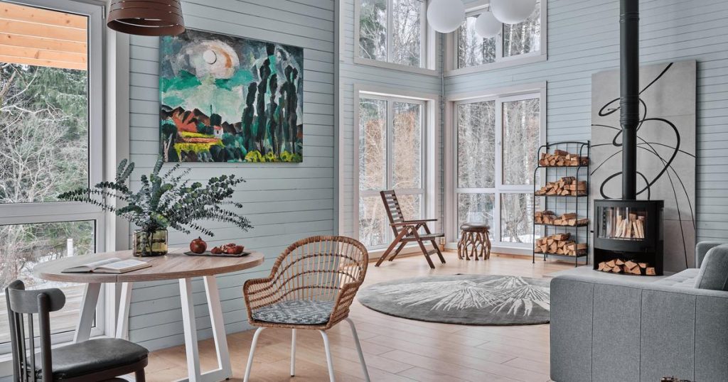 Az éjjeliszekrények helyén lévő csonkok és a ruhaakasztóként szolgáló uszadékfa szervesen illeszkedik egy vidéki ház belsejébe, és olyan természetközeli érzést kelt, amiért általában vidékre megyünk.