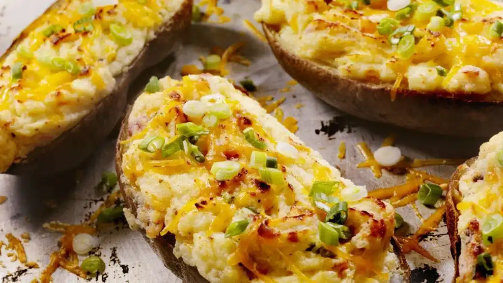 Csak elég nagy burgonyára van szüksége a töltelékhez, valamint a kedvenc zöldségeire, sajtjaira és fűszereire. Ízletes, aromás, egészséges és pihentető burgonyaétel, amely kellően kifinomult ahhoz, hogy a vendégeknek tálalhassa, és elég laktató, hogy helyettesítse a kiadós vacsorát.