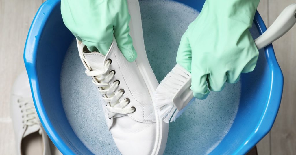 Más otthoni módszereket is használhat a fehér cipő tisztításához, pl. Kis mennyiségű szürke szappan hozzáadásával megsemmisítheti a piszkos gumi talpokat vízkeverékkel.