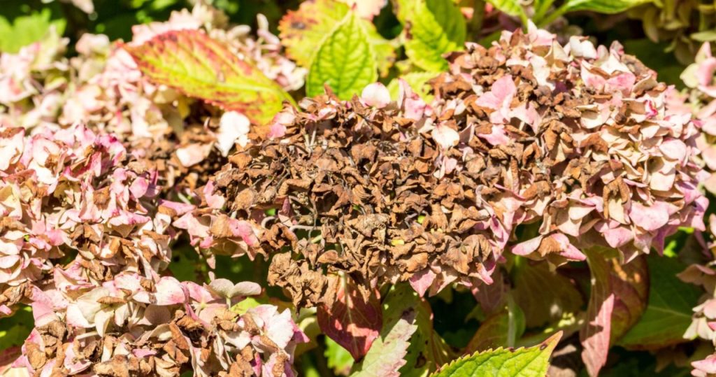A folyamatban lévő hő nem befolyásolja a növényeinket. Ez vonatkozik a hortenziara is Nem szeretik a száraz levegőt és az erős napot– Az ilyen körülmények miatt viráguk elveszíti színét, elhalványul és néha barna.