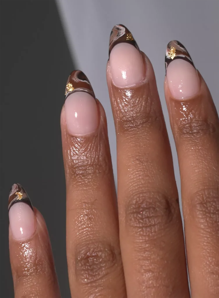 A gradiens manikűr 2023-ban a népszerűség csúcsán van, és az egyik legkedveltebb változat a „Csokoládédoboz”. Ez a trend a barna különböző árnyalatait tartalmazza a világostól a sötétig elrendezett, lágy és elegáns megjelenést biztosítva.