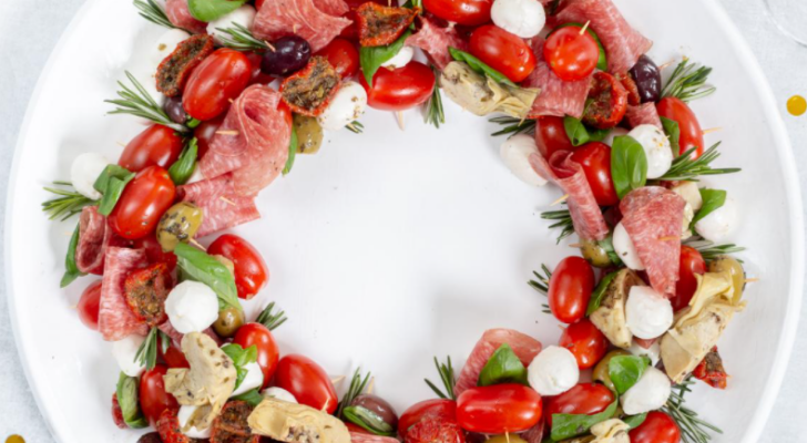 Ezen a héten egy recept, amihez nem kell bekapcsolni a sütőt. Ünnepi italkoszorú, kedvenc antipasti tábla hozzávalóiból készült. Ideális szilveszterre.