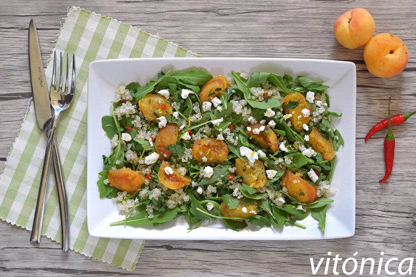 Quinoa saláta pirított sárgabarackkal és rukkolával