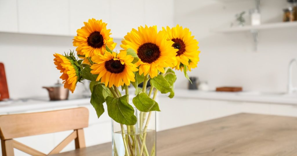 A napraforgó választása számít. Válasszuk ki azokat, amelyek még nem fejlődtek ki, és nincsenek a hervadási jelek, pl. barna pelyhek– A száruknak merevnek, szilárdnak és a leveleknek frissnek kell lenniük. Ezek a minták sokkal hosszabb ideig maradnak a vázában.