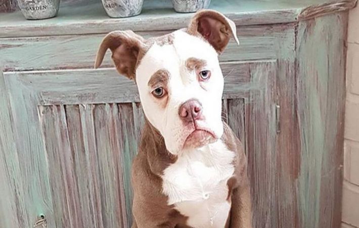 Az internetezők szerint a szájkosár legszomorúbb kifejezése egy Madame Eyebrows nevű kutya.