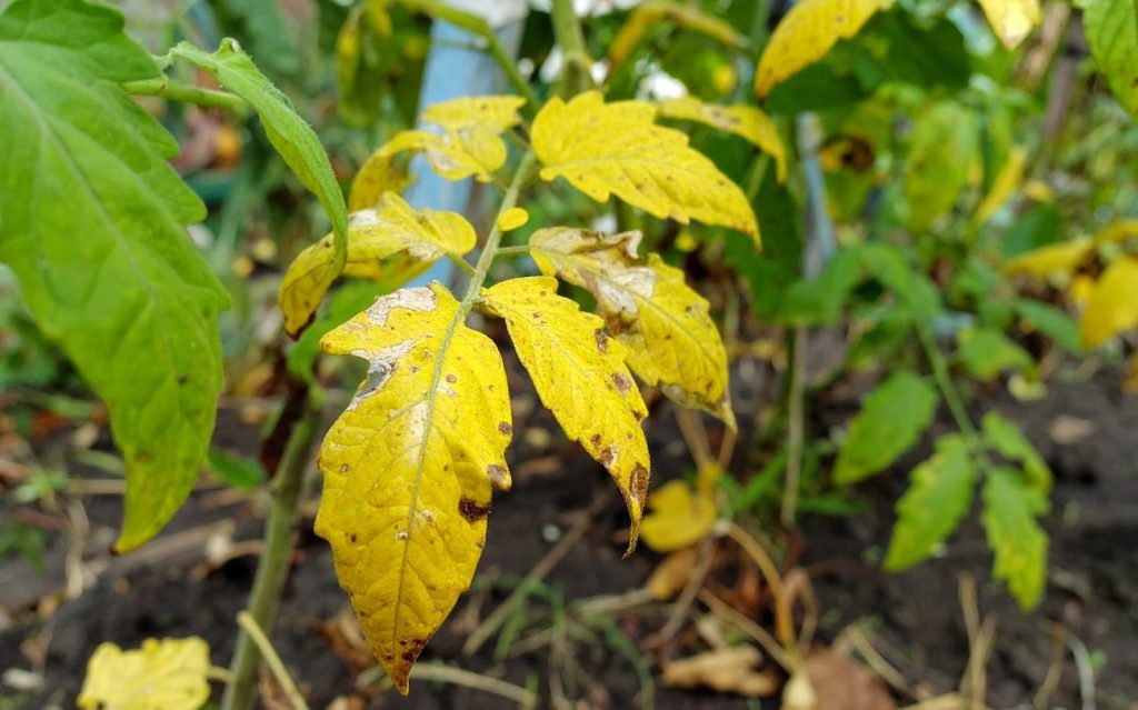 Előszörmeg kell határozni a levelek sárgulásának okát. A paradicsom lombozatánál lévő sárga foltok leggyakrabban olyan gombás betegségeket jeleznek, amelyek aktívan fejlődnek a magas páratartalom körülményei között.