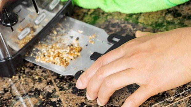 A trükk a kenyérpirító belsejének egyszerű tisztításához