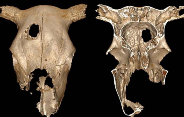 Egy tanulmány most kimutatta, hogy egy lyukat a koponyán egy olyan személy csinált, aki trepanációt végzett. Bizonyítékként a szakértők azt a tényt említik, hogy a lyuk körül nem találtak gyulladást, ami általában egy másik artiodaktilis szarvú állattal való véletlen ütközéskor következik be.