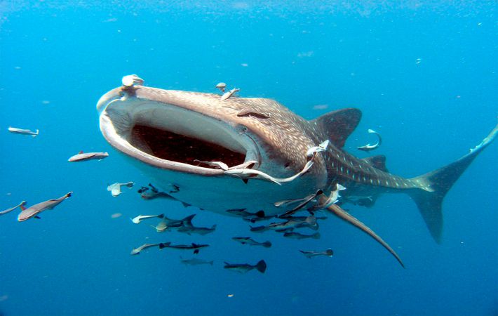 A cetcápák nem veszélyesek az emberre. Az óceánok ezen képviselőinek fő étrendje a plankton. A cetcápák csoportokban élnek, és ritkán láthatók egyedül.