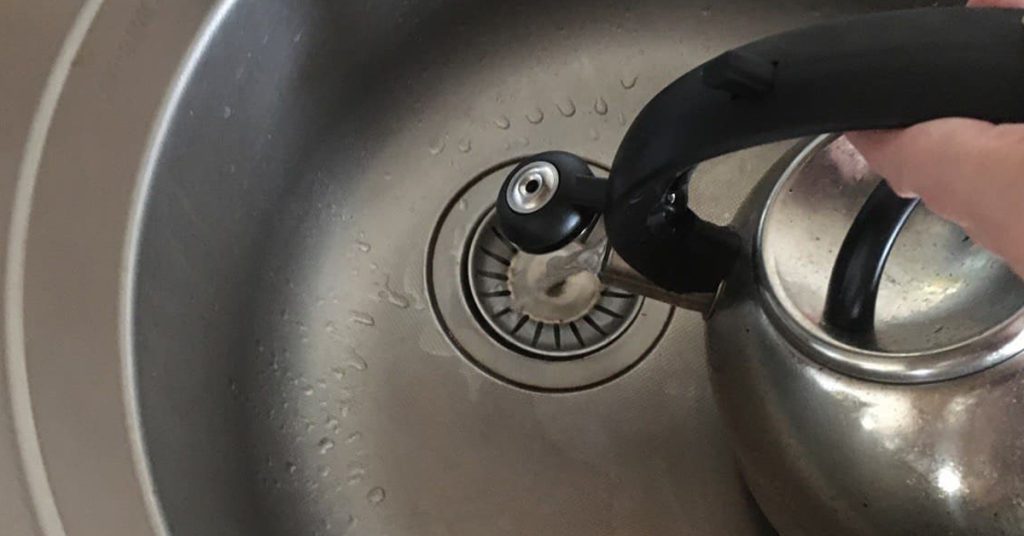 Végül öntsön még többet a lefolyóba egy tele vízforraló forrásban lévő vízzel.