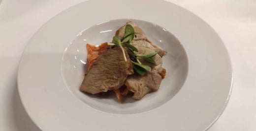 A kimchi elkészítése után a koreaiaknak energiára van szükségük, és ételt kell fogyasztaniuk. Az egyik sertéshas friss kimchivel. Fotó: A szerző