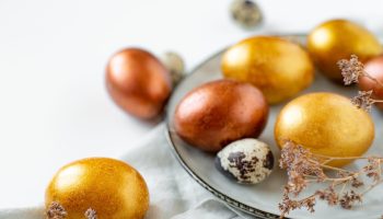 Vegyünk néhány húsvéti tojást a konyhaszekrénybe, és főzzük meg. Gyönyörű arany színűek lesznek
