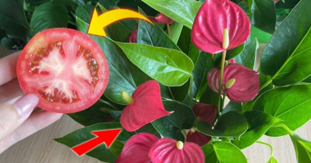 Ha az anthurium hosszú ideig nem virágzik, vagy a virágzás nagyon gyenge és rövid ideig tart, próbálja meg etetni. Csak 1 paradicsom és víz kell hozzá. Az Anthurium nagyon könnyen reagál erre az egyszerű, természetes műtrágyára!