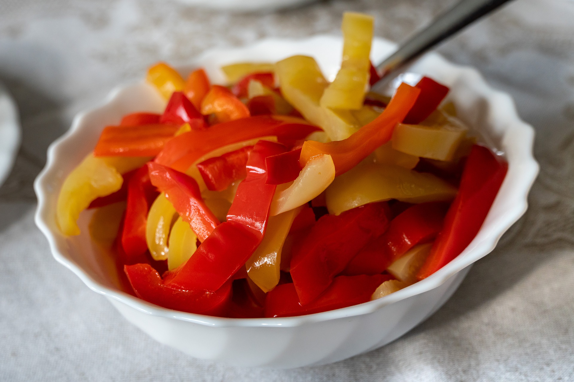 Miután a serpenyő tartalma elérte a forráspontot, az apróra vágott paprika körülbelül egyharmadát küldje a pácba.