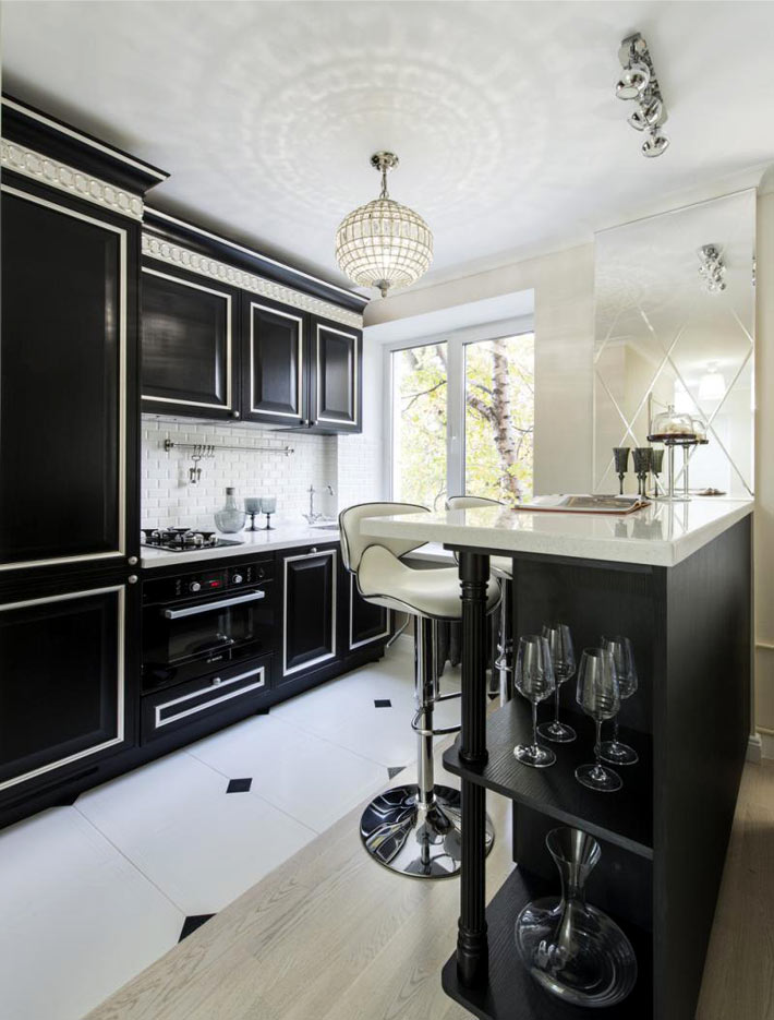 A merész feketét széles körben használják a modern dizájnban. A konyha sem kivétel, és ha elegáns és eredeti belső teret szeretne létrehozni, akkor nyugodtan használhatja a feketét.