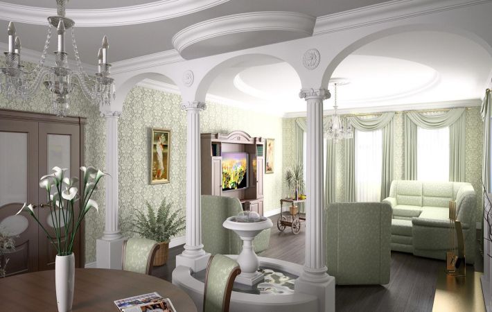 Emlékeztetni kell arra, hogy mindenekelőtt az oszlopok használatát a belső térben funkcionalitásuk határozza meg. Tehát az oszlopok gerendapadlót vagy bármilyen más szerkezetet támogatnak. Ezenkívül az oszlopok díszítő elemet is adnak a belsőépítészethez.