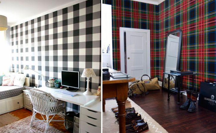 A mennyezeten a kockás mintát gyakorlatilag nem használják, mivel ez uralja a belső teret, és a szobában minden más kiegészítő elemmé válik.
