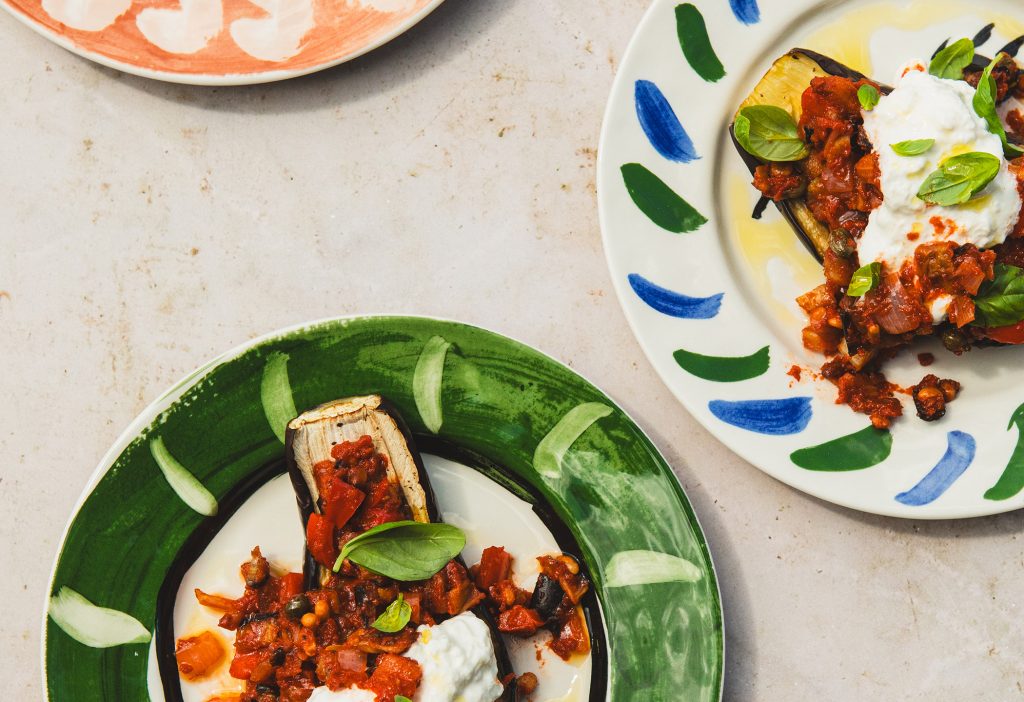 - Vegye ki a padlizsán felét a sütőből. Töltsük meg őket caponata-val.