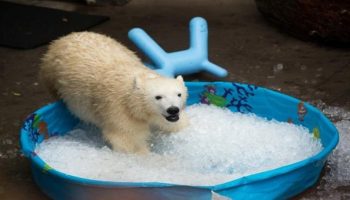 A jegesmedve jeges fürdőt élvez