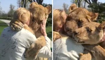 Oroszlányok találkozása a nővel, aki ápolta őket 7 év különélés után