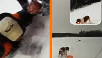Egy kutya segít megmenteni embere életét, aki egy befagyott tavon esett át a jégen. Nézze meg a drámai mentést