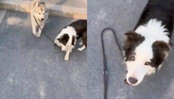 A border collie megmenti a helyzetet azzal, hogy visszahozza a Huskyt a kedvenc szülőjének
