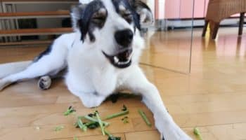 Add oda kedvencednek. Jóízűen eszik és csóválja a farkát