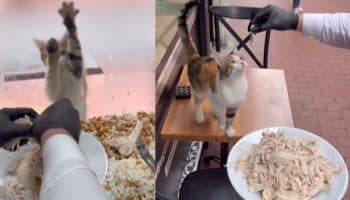 Egy macska türelmesen várja, hogy egy török ​​séf elkészítse az ételét – a videó elterjedt