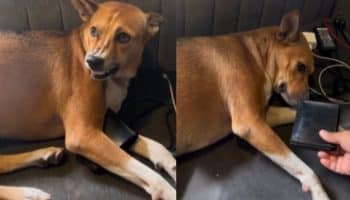A kutya őrzi az apa pénztárcáját, nem hajlandó megérinteni