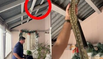 Egy szörnyű piton „vár” egy nőt a bejárati ajtajában. Nézze meg, hogyan mentette el