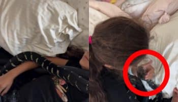 Egy lány egy kígyóval alszik körülötte, és megsimogatja. Az emberek „veszélyesnek” hívják