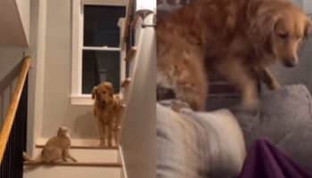 Az ember azt mondja, hogy a macskája nevelte fel a kutyáját, megosztotta a videót bizonyítékként