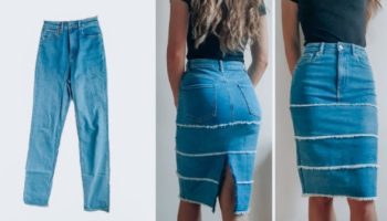 A régi farmerből megagalléros szoknyát varrtam, ami elrejti a figura hibáit. Íme, milyen egyszerű (FOTÓK)