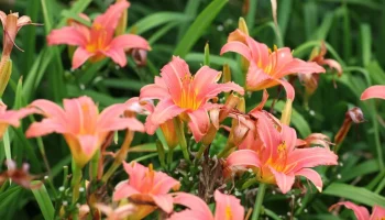 A szomszédok csodálják a liliomot. A virágok súlya alatt lesz hajlítva, amikor kiönti őket