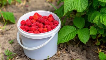 Az egy bokorból származó málnavödör valódi: ez a felső öntettel megduplázza a termést