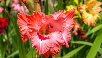 A Gladioli buja csokorral virágzik: A július felső öntet erősíti a szárokat és meghosszabbítja a virágzást