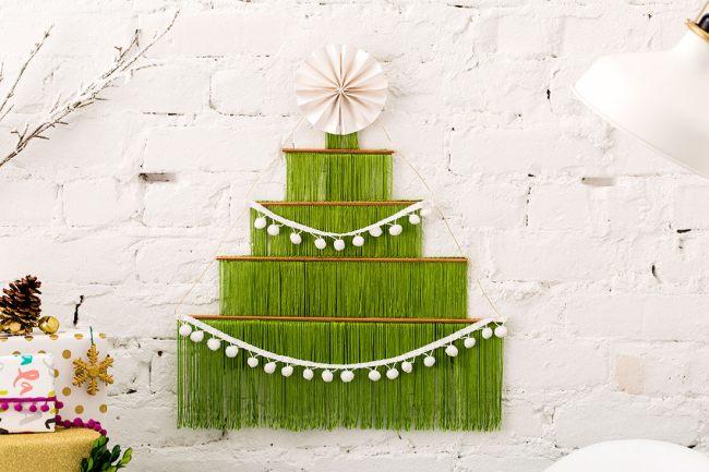 Ragasztópisztollyal ragasszon pomponfüzért a karácsonyfa rétegeire. Válassza ki a füzér hosszát és helyét kívánsága szerint.