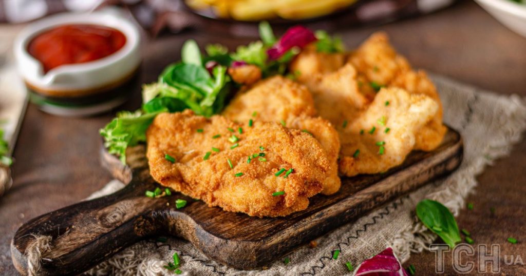 Egy forró serpenyőben növényi olajban süssük aranybarnára a csirkefilét.