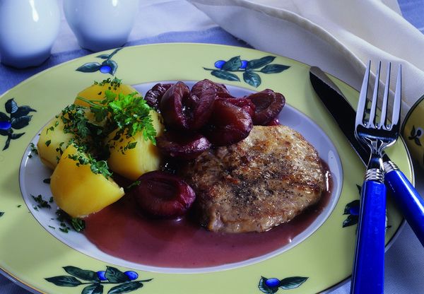 5) A sült húst szilvával és kedvenc körettel tálaljuk.