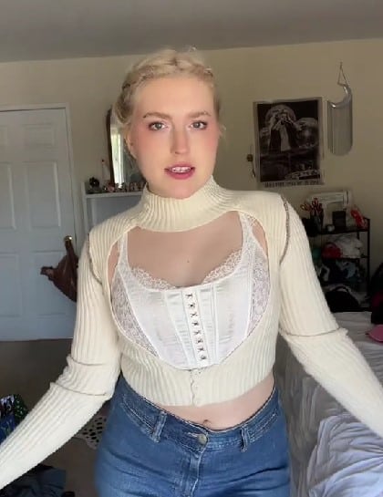 Poppy egy online kreatív, aki megosztja mindennapi életét az interneten. Nemrég posztolt egy vicces videót egy pulóverről, amit egy barátjától kapott. A nem triviális modell rövid volt, elöl nagyon vágott, alul és felül gombokkal. – „Több mint egy évig ott volt a szekrényemben, mert azon gondolkodtam, hogy mivel kombináljam.” – ismerte be a tikoker, és egy olyan ruhát mutatott be, ami valószínűleg sokakat összezavarna. A nő végül úgy döntött, hogy egy fehér fűzővel kombinálja, ami mindent eltakar, amit maga a pulóver mutat. – „Ez annyira aranyos,” – mondta a videóban, miközben elégedett volt az eredménnyel. Amíg.