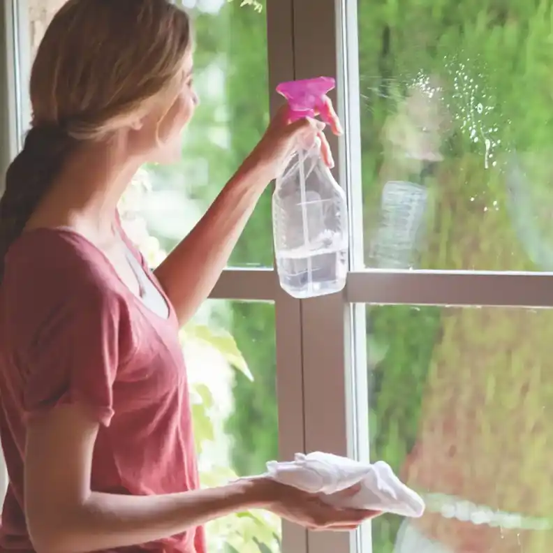 Tippként azt javasoljuk, hogy először az ablakkereteket tisztítsa meg a villával és a szivaccsal, mert egyes porszemcsék lebeghetnek és megtapadhatnak az üvegen. Ezután, hogy ablakai ragyogóan tiszták legyenek, természetes tisztító keveréket készíthet , ha a következő összetevőket keveri össze egy szórófejes flakonban: