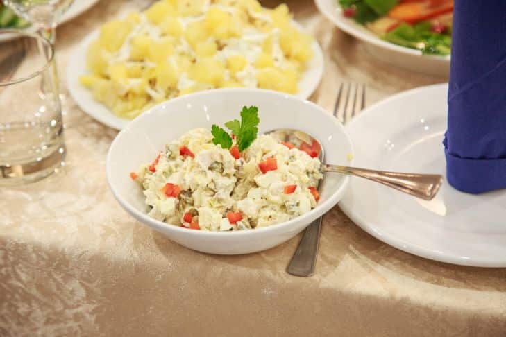5. Keverjük össze a hozzávalókat, ízesítsük majonézzel, óvatosan keverjük össze, hűtsük le és tálaljuk.